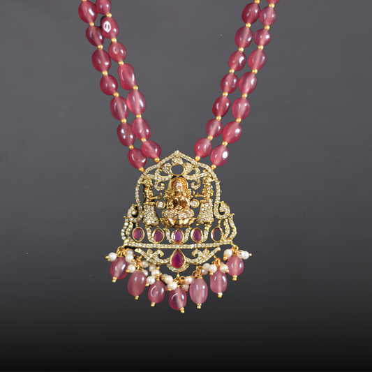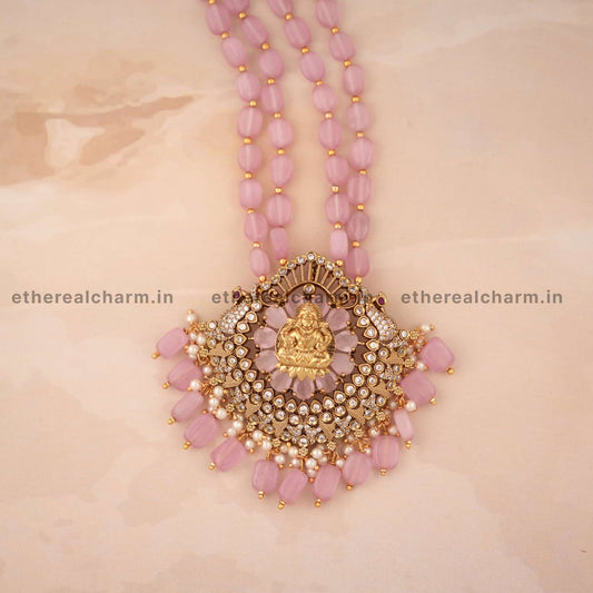 Exquisite Pink Monalisa Beads Necklace with Mata Lakshmi Pendant
