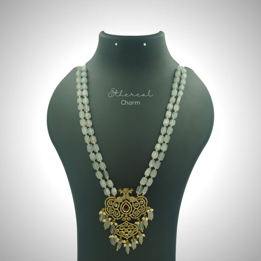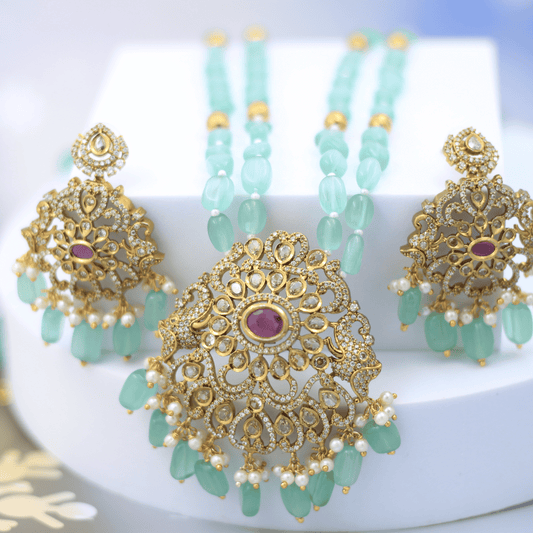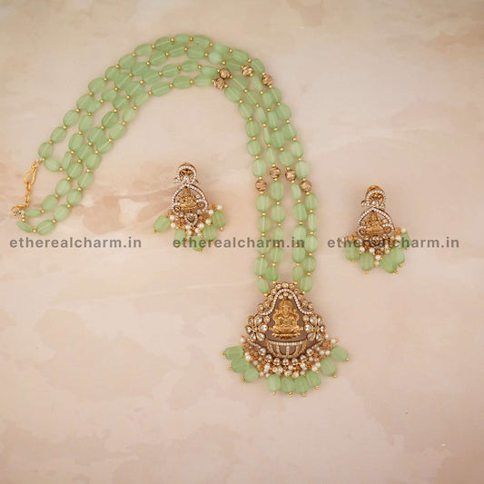 Celestial Grace: Monalisa Beaded Necklace Set with Lakshmi Pendant